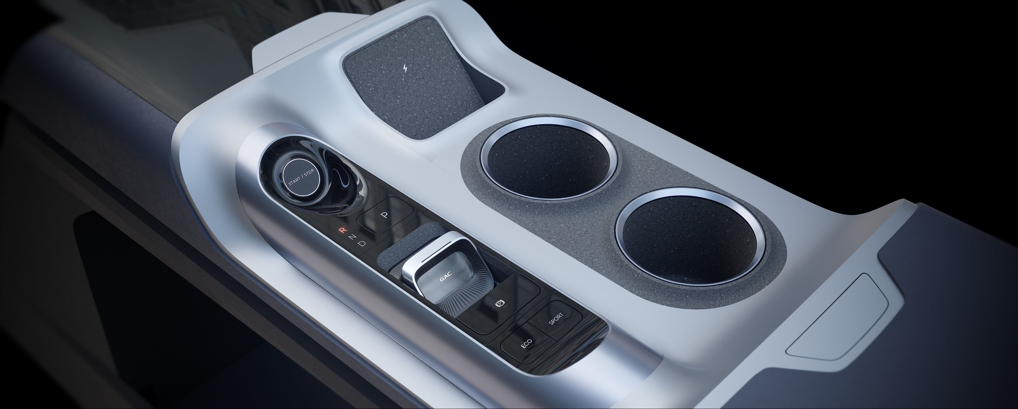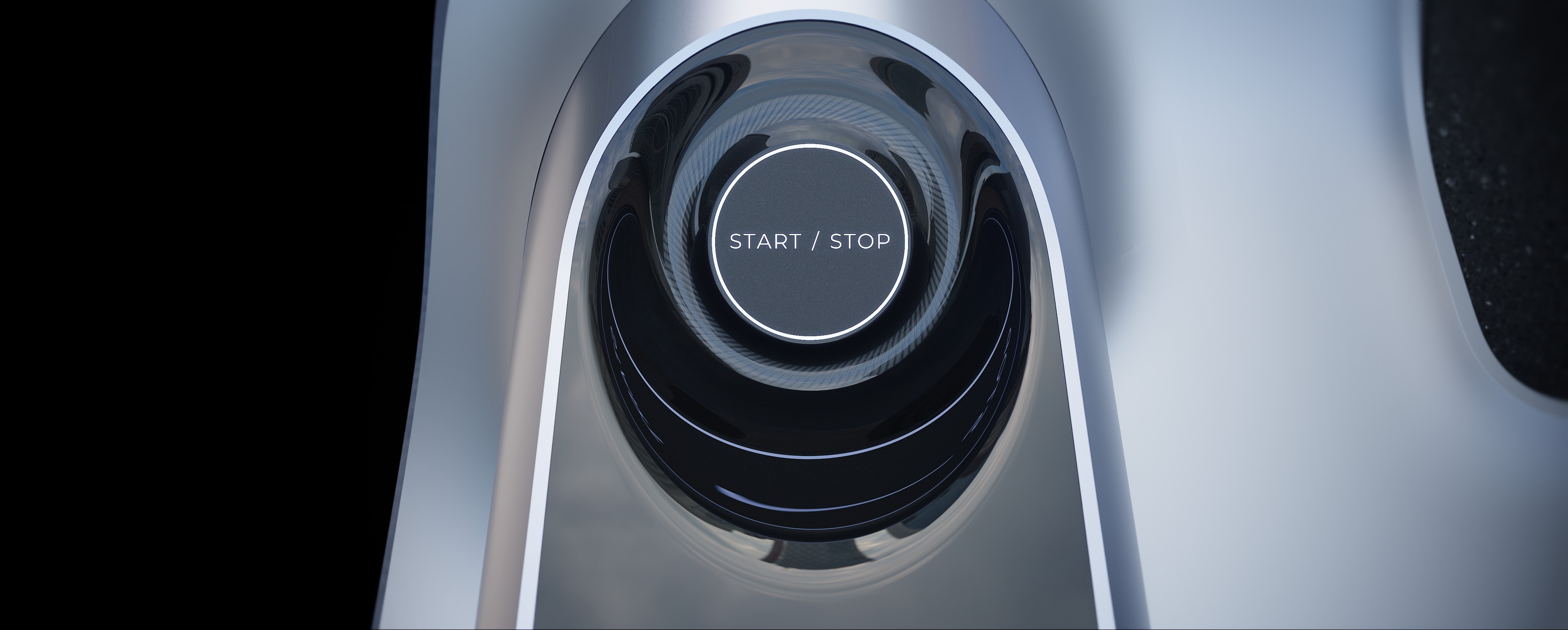The monostable shifting paddle is meticulously crafted to showcase the vehicle's sophisticated sportiness, preserving the elegant push-and-pull shifting gesture. This is achieved through a metallic ring structure enveloping the gem-like crystal at the center, creating a sculptural focal point in the interior.